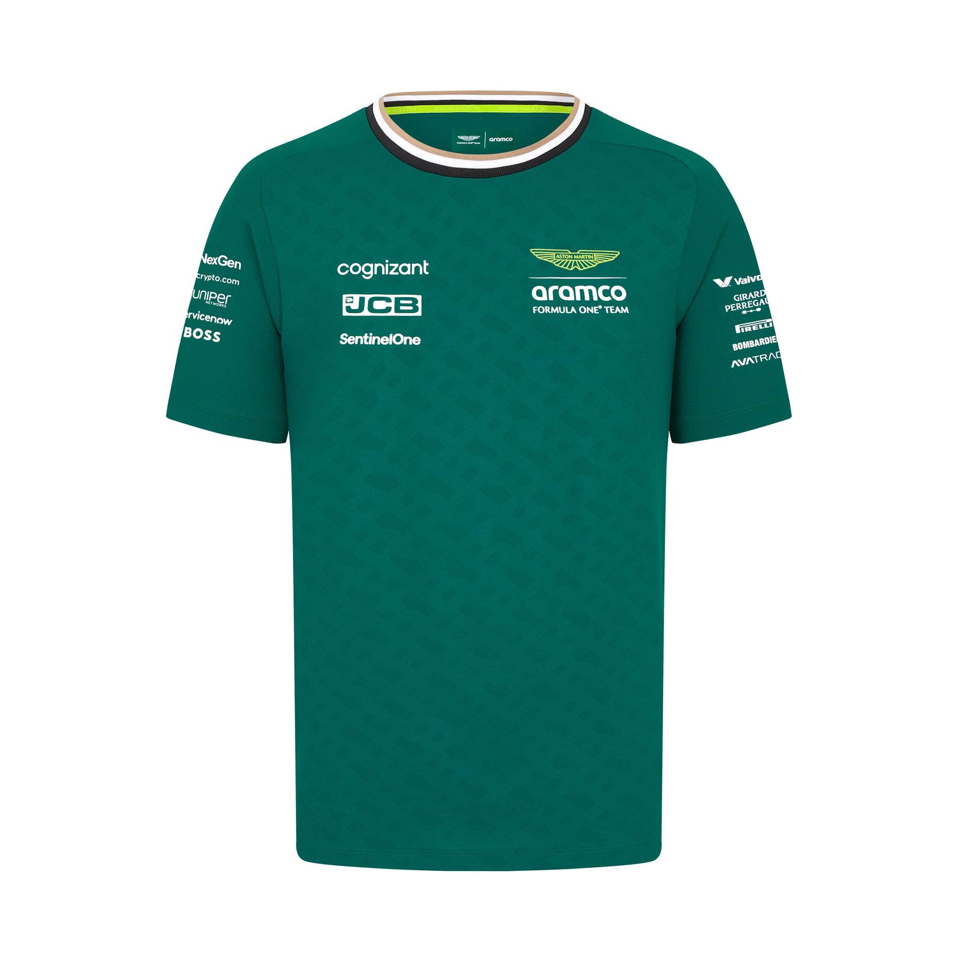As worn by the Aston Martin Formula One Team during the 2024 F1 World Championship, this team tee shirt is the perfect way to get race ready. Aston Martin Aramco F1 Team logos and partner logos finish the look, with a BOSS neck stripe