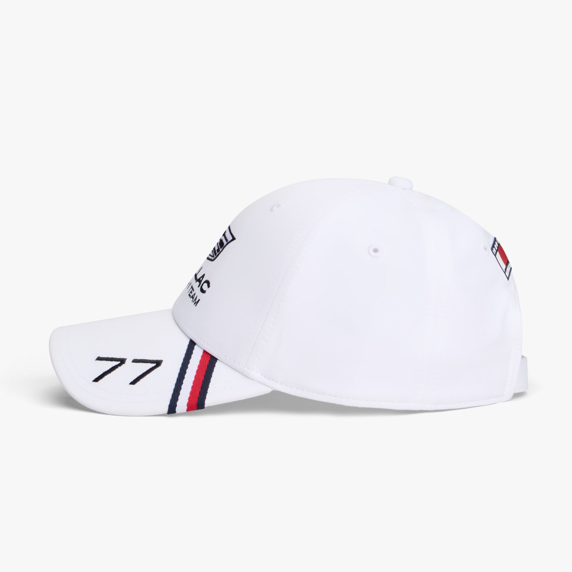 Top off your race-ready wardrobe with the Cadillac F1 Team 2026 x Tommy Hilfiger Valtteri Bottas Cap for Adults in crisp white. Part of the official fanwear collection from the Tommy Hilfiger x Cadillac Formula 1 Team partnership, this premium unisex baseball cap blends bold American motorsport-inspired style with classic fashion design.