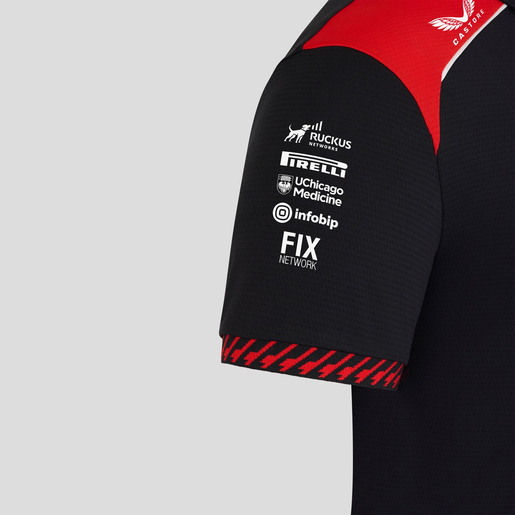 Haas F1 Team 2026 Short Sleeve Polo Mens - Caviar / Flame Scarlet