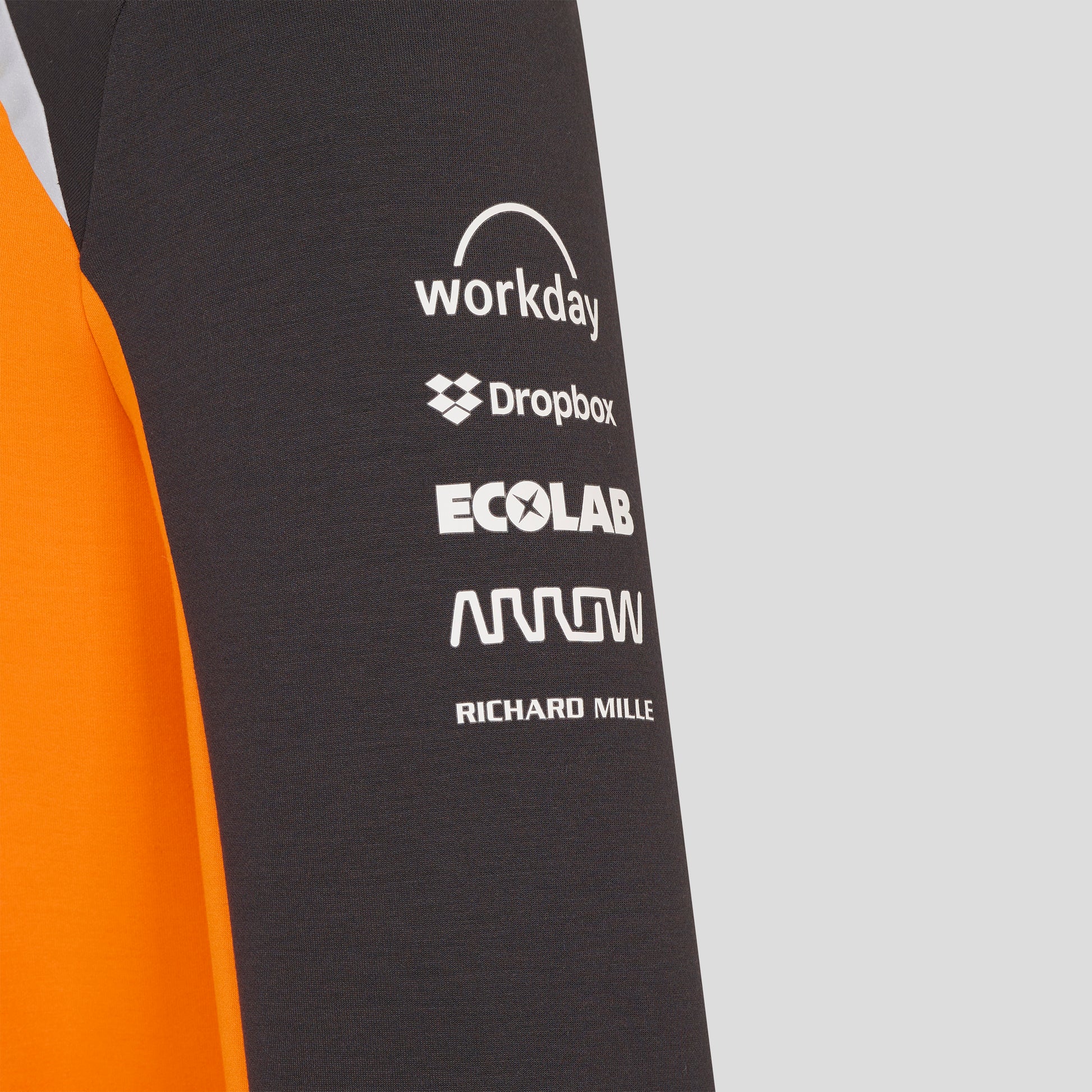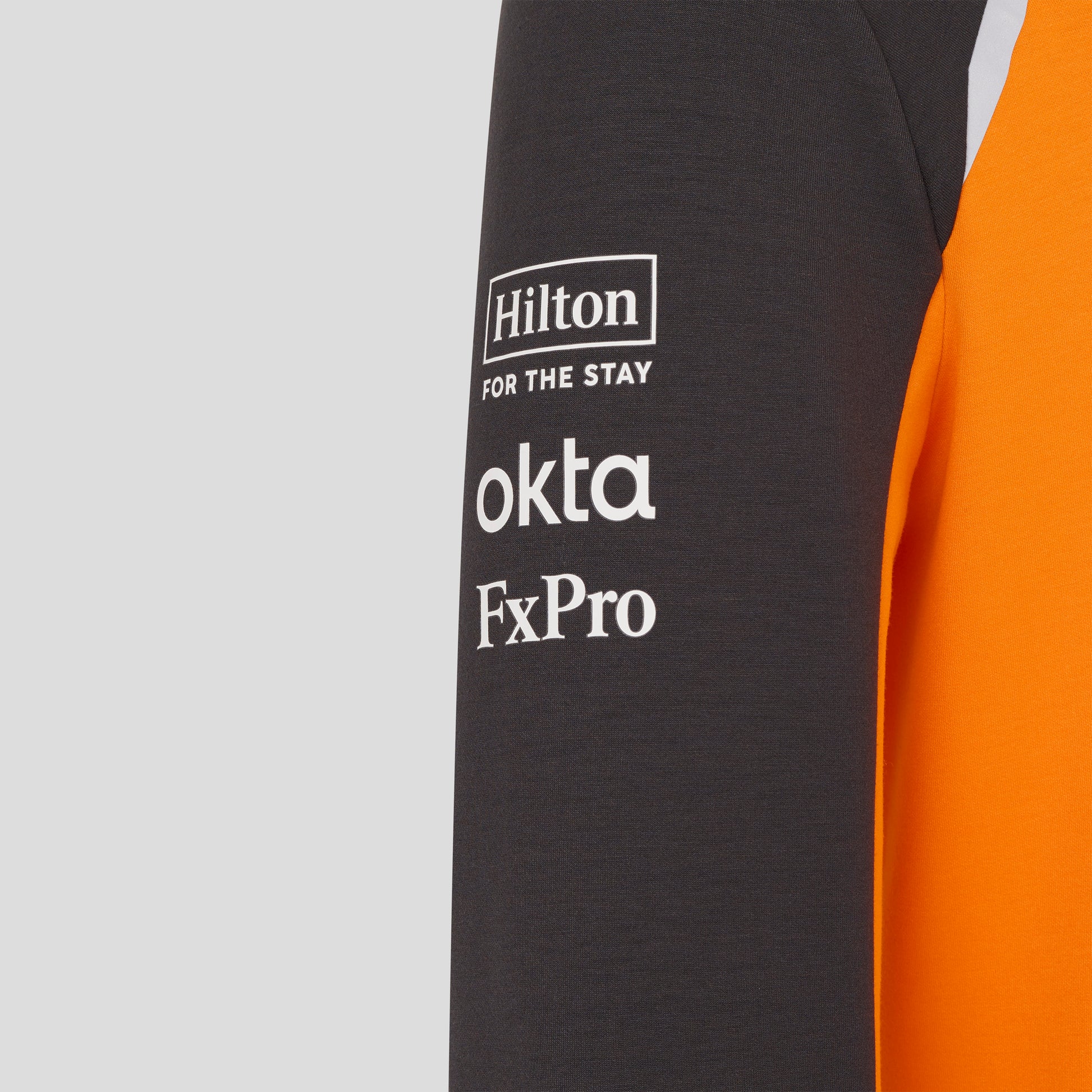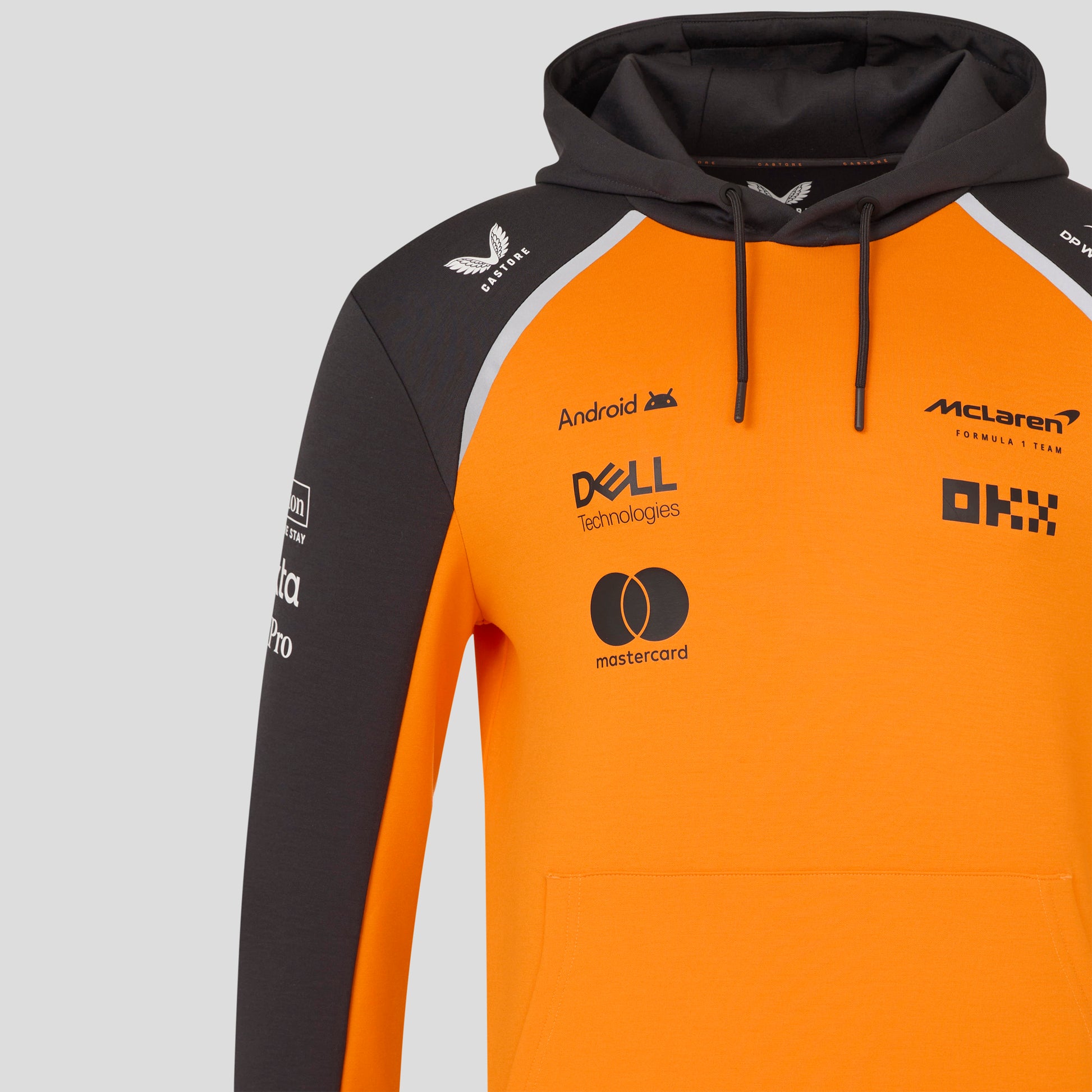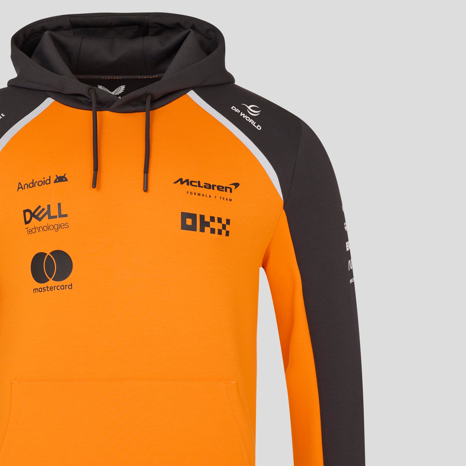 Show your support for McLaren Racing in style with this official Team Hooded Sweat. Designed for both comfort and performance, it features the McLaren Formula 1 Team logo and signature details. Worn by both Lando Norris and Oscar Piastri, the soft, premium fabric makes it perfect for race days, casual wear, or layering up in cooler weather. A must-have for any McLaren Formula One fan.