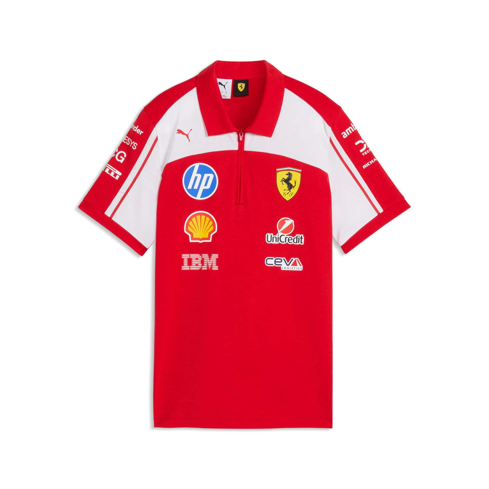 Support Ferrari in style with the Scuderia Ferrari F1 Team 2026 Polo for women in red. This official team polo features a classic collar, breathable fabric, and Scuderia Ferrari F1 branding, perfect for race days, casual wear, or motorsport-inspired everyday style.