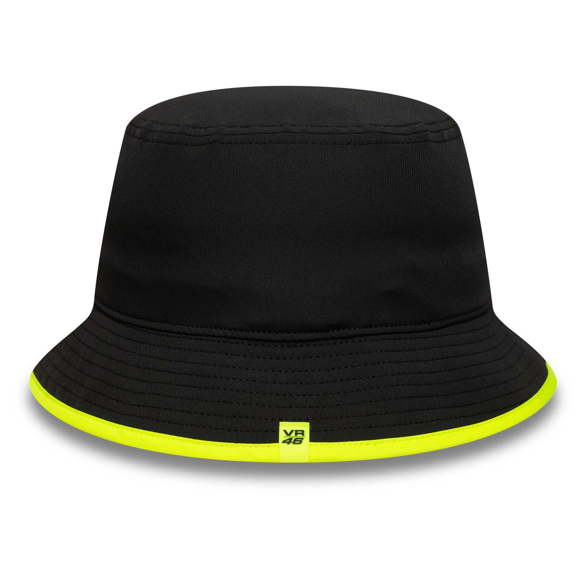 The VR46 Recycled Seasonal Black Bucket Hat combines bold VR46 style with sustainable design.