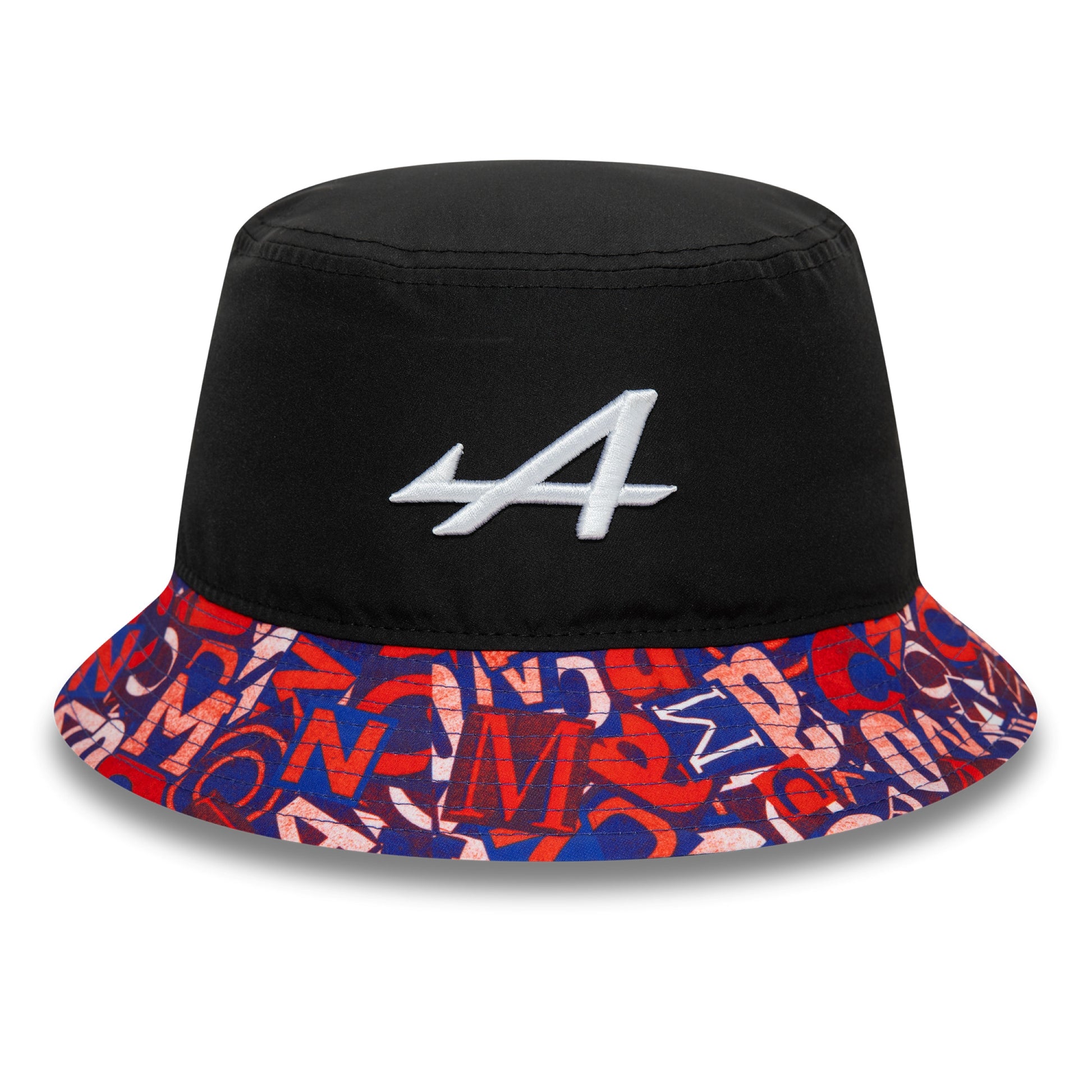 Trendy Bucket hat to celebrate the Monaco Grand Prix. Alpine F1 Team logo and all over print design on the brim. Made by and featuring the New Era Flag.