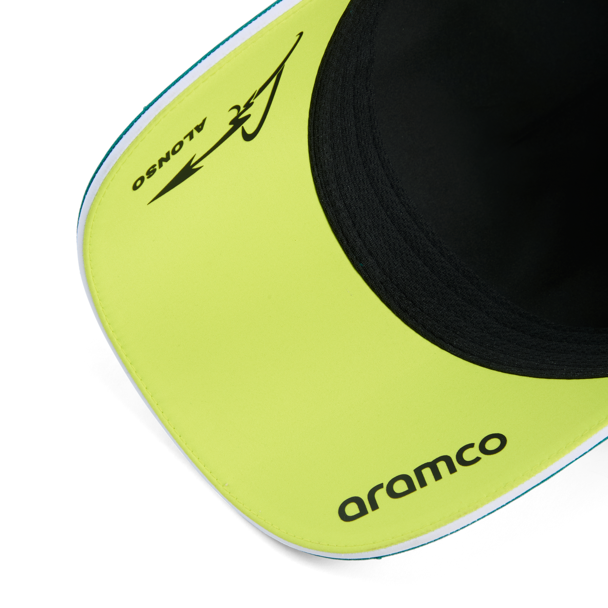 Support Fernando Alonso in style with the Aston Martin F1 Team 2026 Alonso Baseball Cap in Lime Shimmer. This unisex cap features a curved peak, adjustable strap, and official Aston Martin Formula One Team and Alonso branding, offering a comfortable fit and bold motorsport look. Perfect for race days, casual wear, or showing driver support.