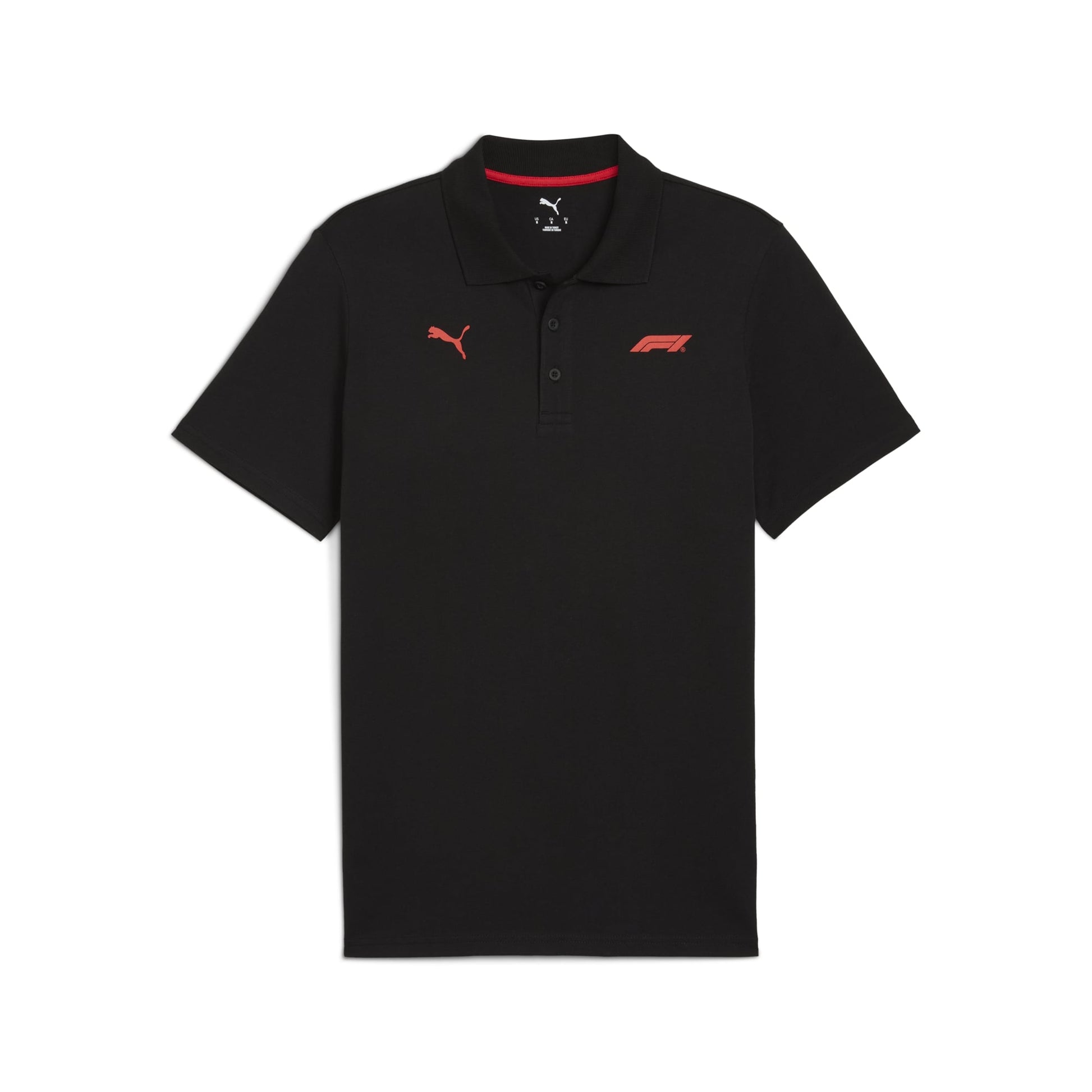 Official F1 logo polo shirt with Puma cat. Subtle F1 Polo for Formula One Fans. Available in black or white.