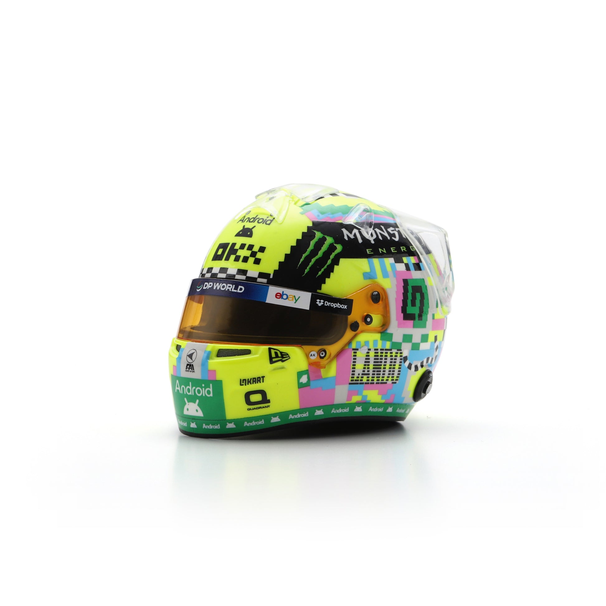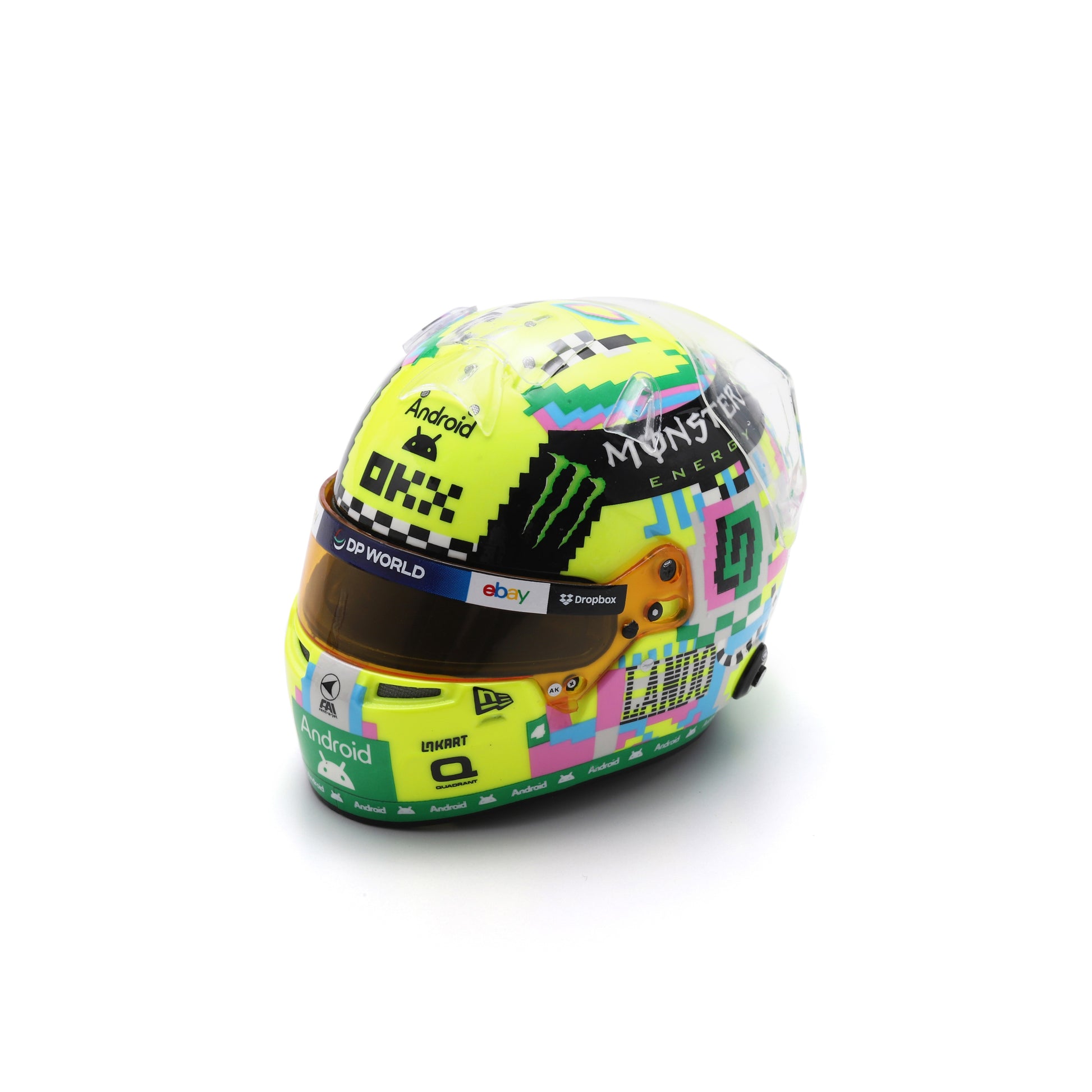 Lando Norris sported this vibrant helmet at Silverstone back in 2024, this 1:5 scale model is perfect for any desk or display.