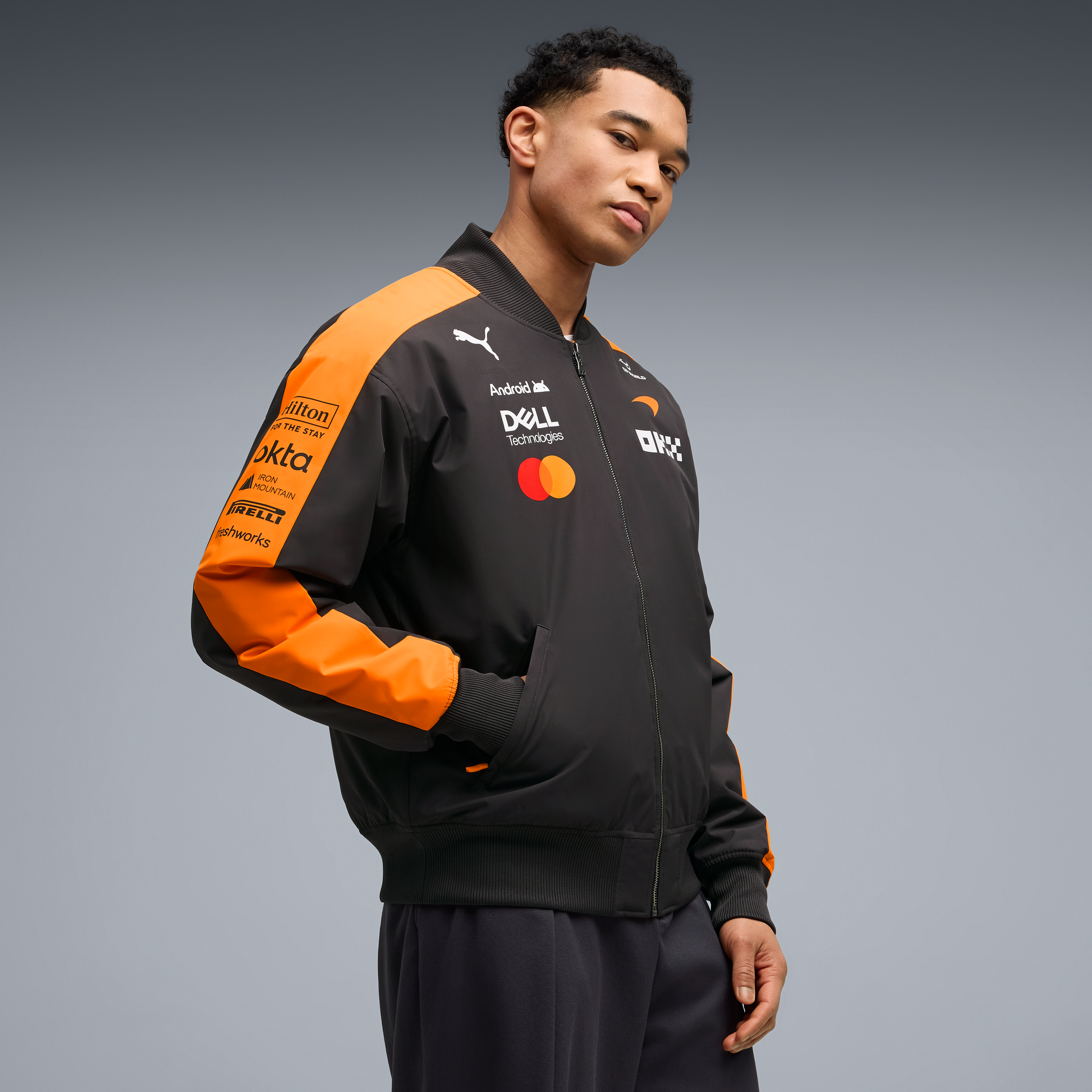 Stay stylish and protected with the McLaren Racing F1 Team 2026 Bomber Jacket for men in Papaya. Featuring a modern bomber design, comfortable fit, and official McLaren Racing F1 Team 2026 branding, this jacket is perfect for race days, casual wear, or motorsport-inspired everyday style.