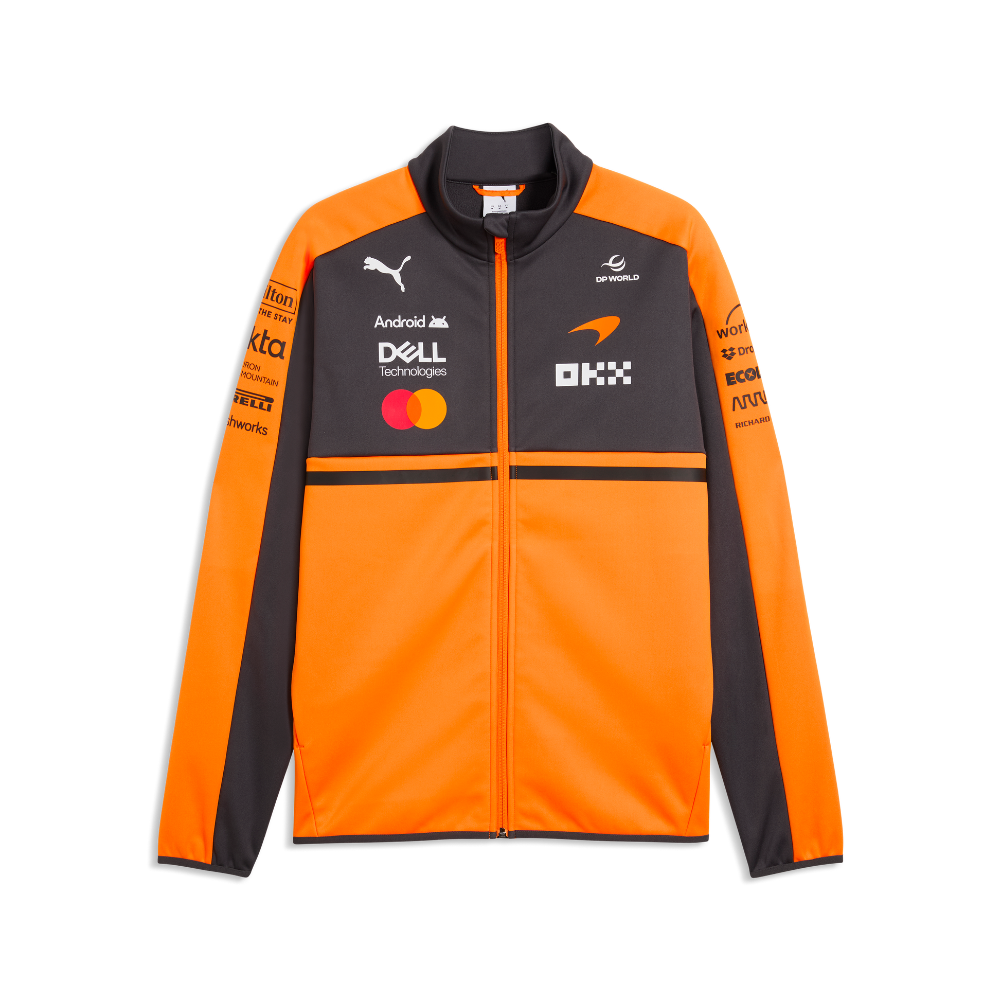 Stay protected and stylish with the McLaren Racing F1 Team 2026 Softshell Jacket for men in Papaya. Featuring a lightweight, weather-resistant design, modern fit, and official McLaren Racing F1 Team 2026 branding, this jacket is perfect for race days, outdoor activities, or motorsport-inspired everyday wear.