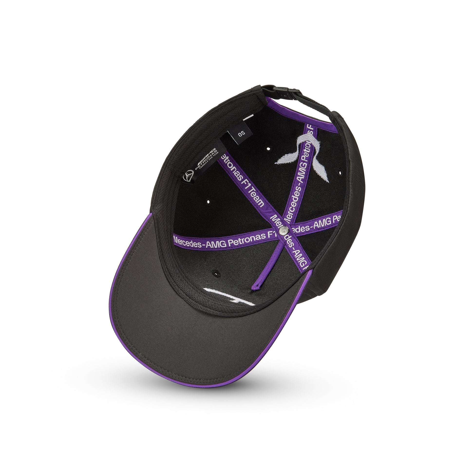 Official Mercedes AMG Petronas F1 Team Lewis Hamilton Trucker Cap for the kids. Team and partner sponsors with trucker mesh. Choose Black or Purple