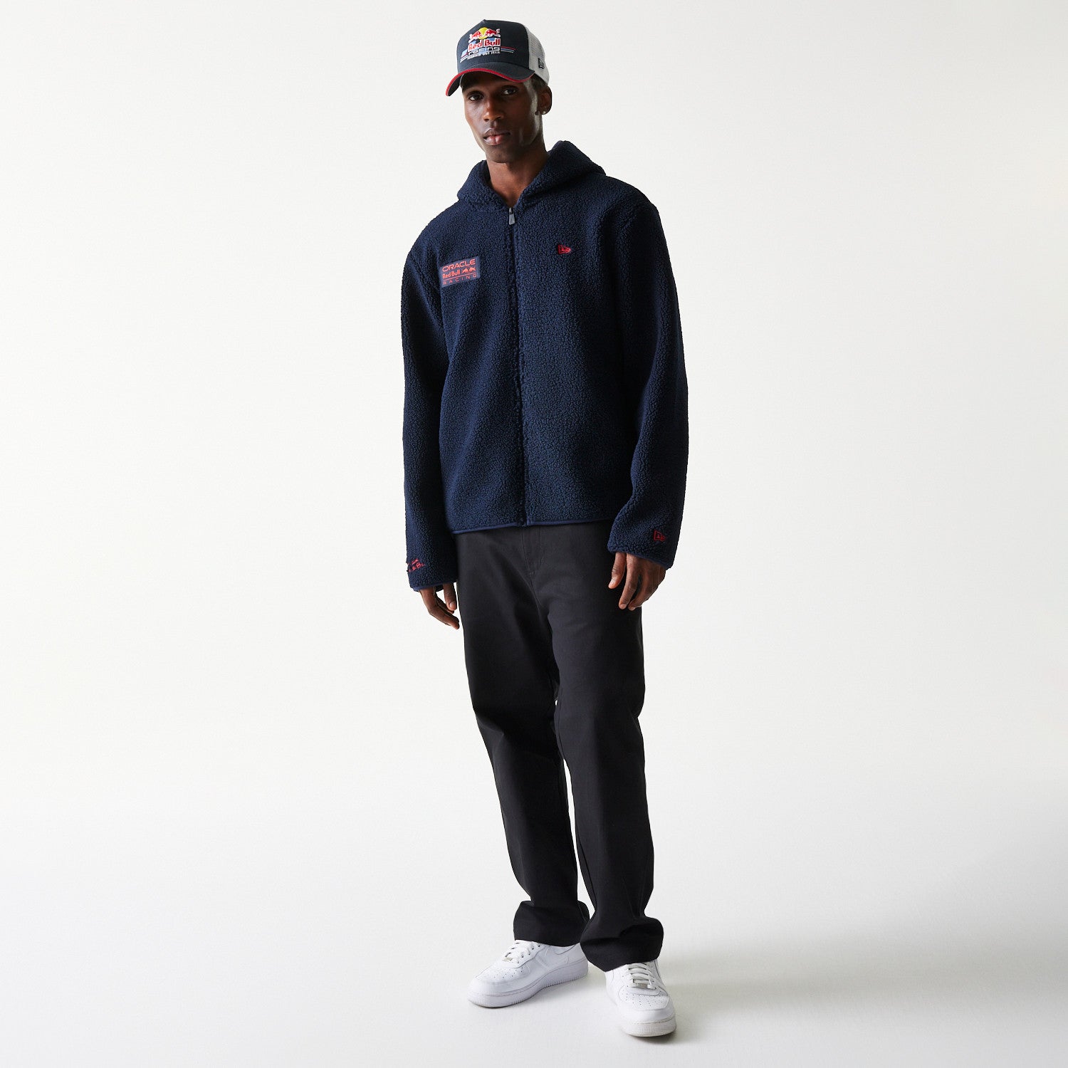 Snuggle up in the Red Bull F1 Team Sherpa Jacket. With a cosy hood and finished with subtle Oracle Red Bull Racing Team logo on the front. Stay warm with Red Bull F1 Team.