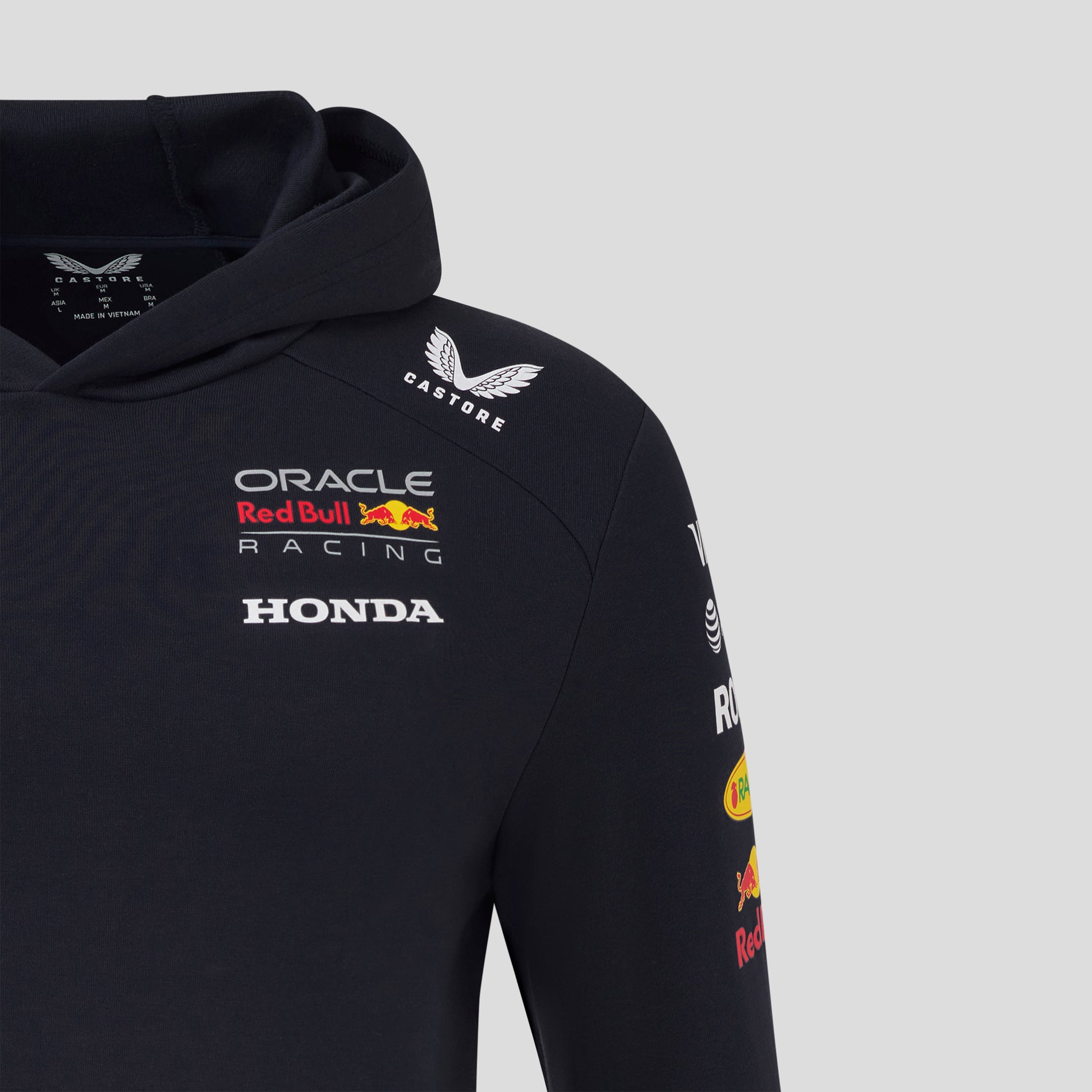 Adults Oracle Red Bull Unisex Pullover Hoodie. ORBR Red Bull unisex hoody featuring small Oracle RedBull racing logo and team sponsors. This hoody is in the teams colour of Night Sky and is Perfect for the RedBull Formula 1 fan.
