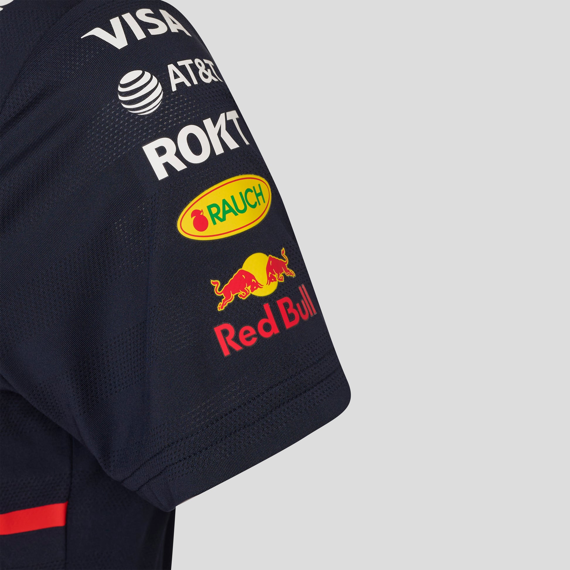 Oracle Red Bull Replica F1 Set Up Tee Shirt. Womens set up tee, the front features the Red Bull team banner, ORBR team Logo and Tag Heuer official sponsor badge. The back of the polo shirt features the iconic charging Bulls logo.