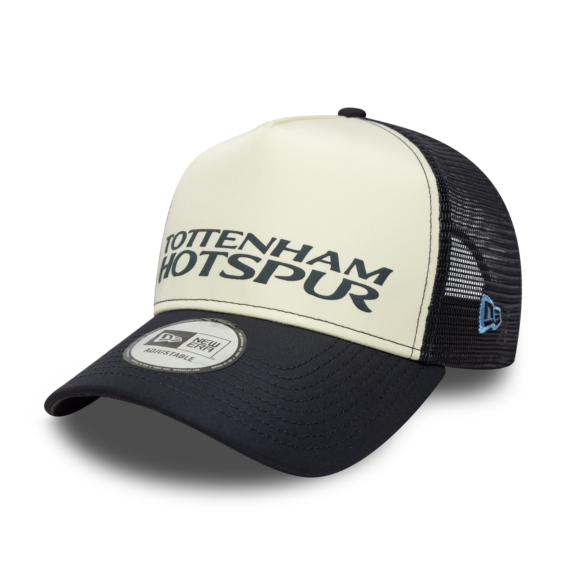 The Tottenham Hotspur Puff Word Mark Trucker Cap Adults - Navy combines classic Spurs style with a bold, modern design.