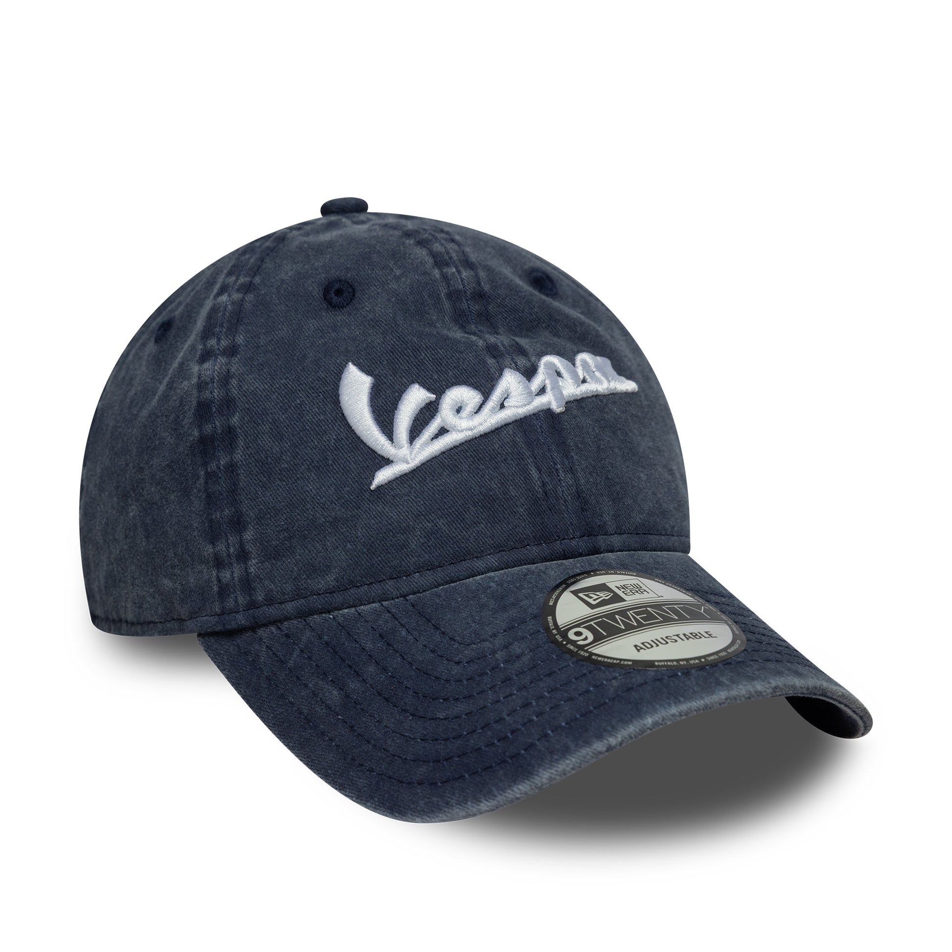 The Vespa Washed 9Twenty Blue Adjustable Cap combines relaxed Vespa style with a worn-in look.